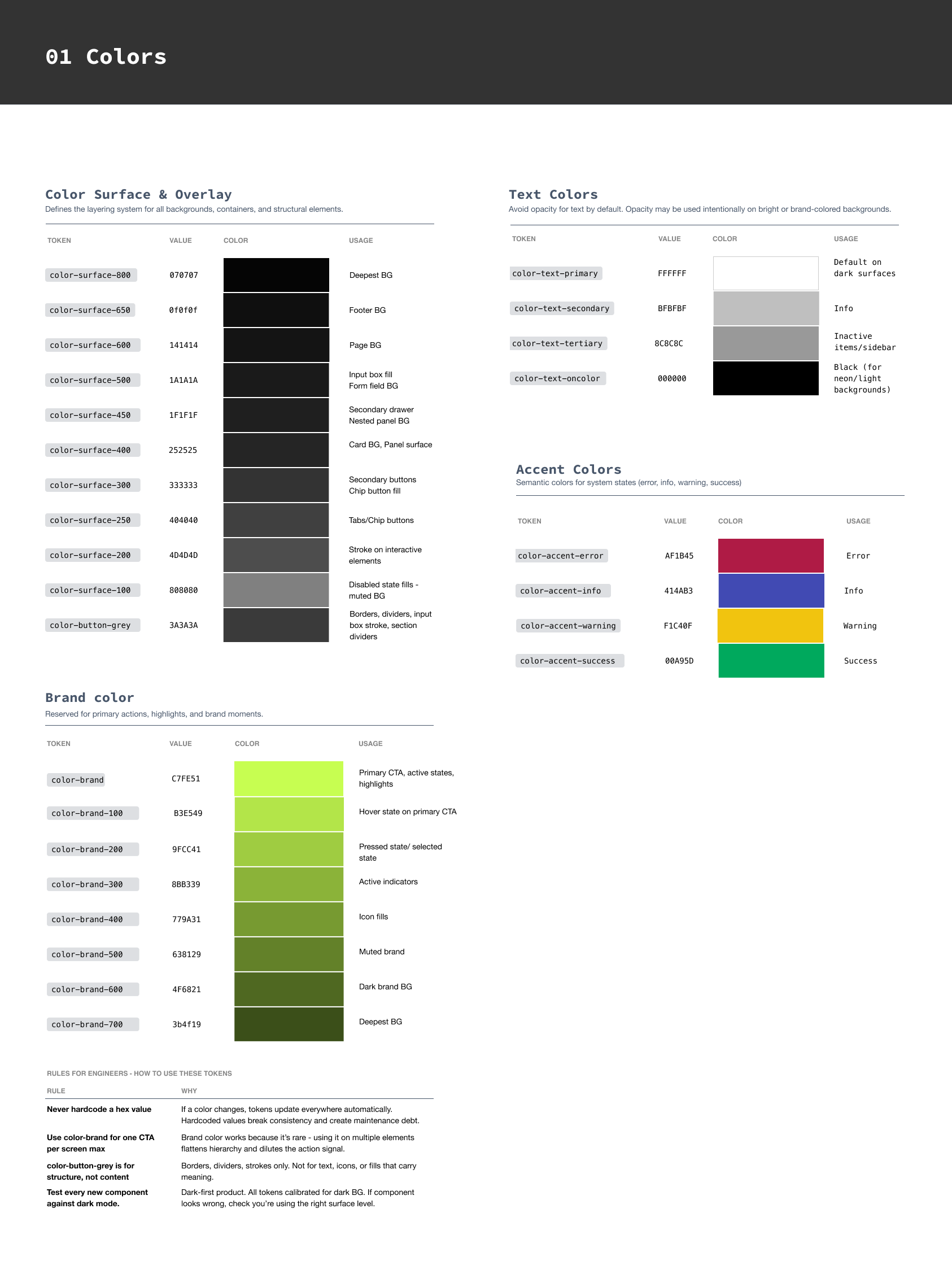 Color token system alongside CSS variable implementation