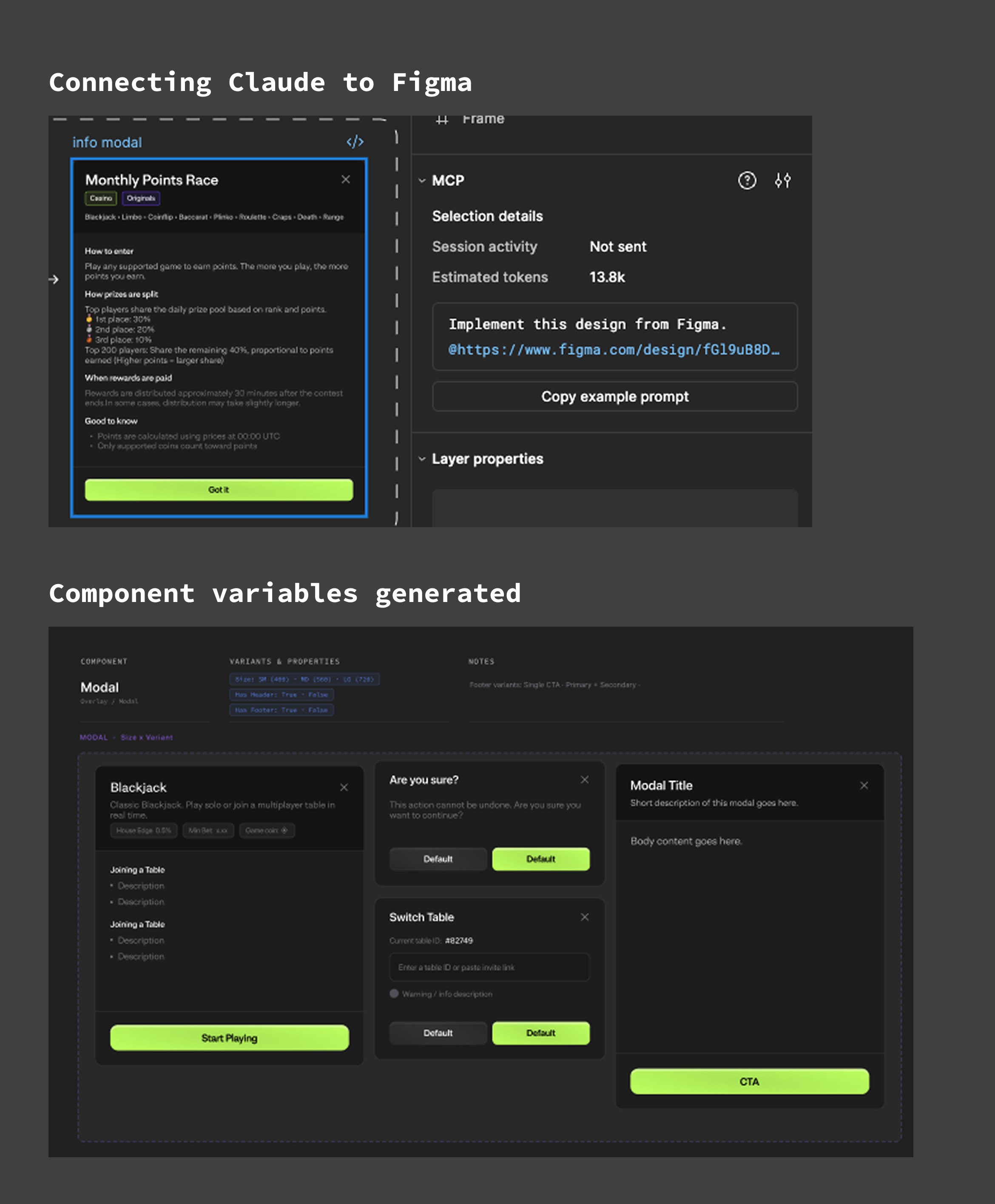 Walked them through token structure, component naming logic, how to use the library, when to extend versus create something new. Before this there were no colour styles, no text styles, no component states. Now design work that used to take months takes weeks. Full game interfaces that required weeks of back-and-forth can be turned around in days.