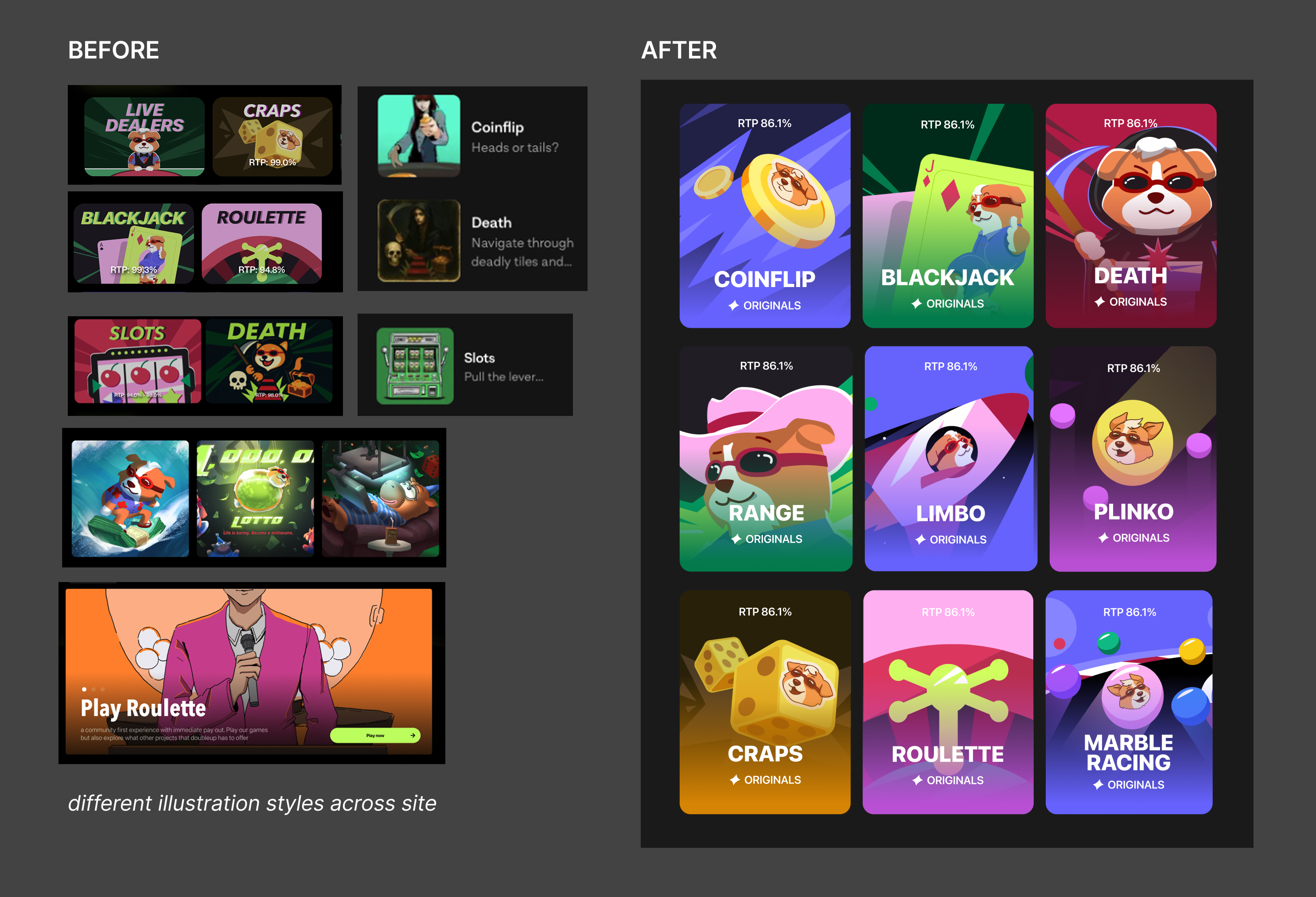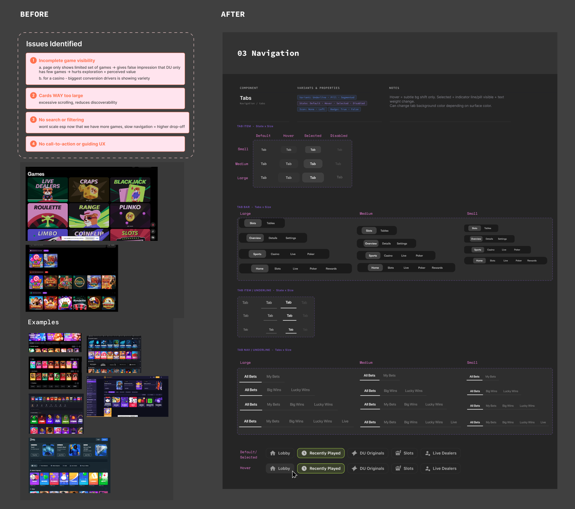 I started by auditing every game panel and mapped inconsistencies. I realized the games fell into two groups with fundamentally different needs.